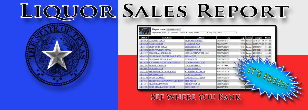 Click Here to search for liquor sales of any club in Texas as reported by the Texas State Comptroller.